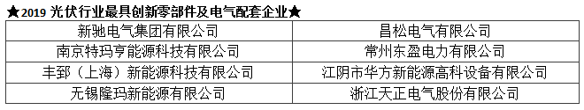 TOP 2019光伏行业创新力企业50强及各单项奖入围企业名单(排序不分先后):